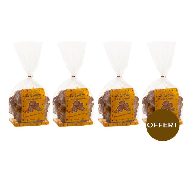 3 sachets de crakou orange et amandes achetés, le 4ème OFFERT